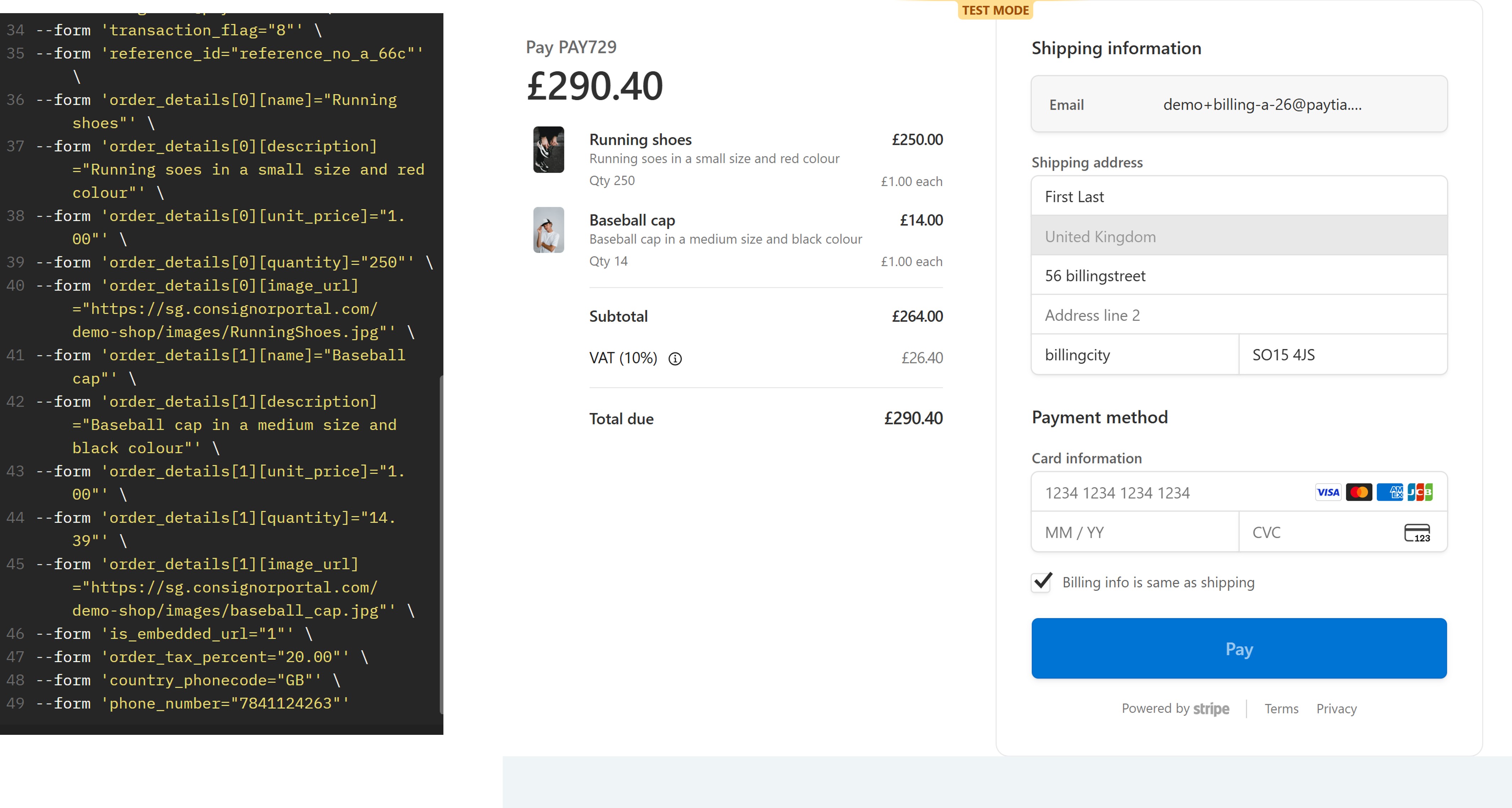 Paytia API driven Web Checkout with Stripe