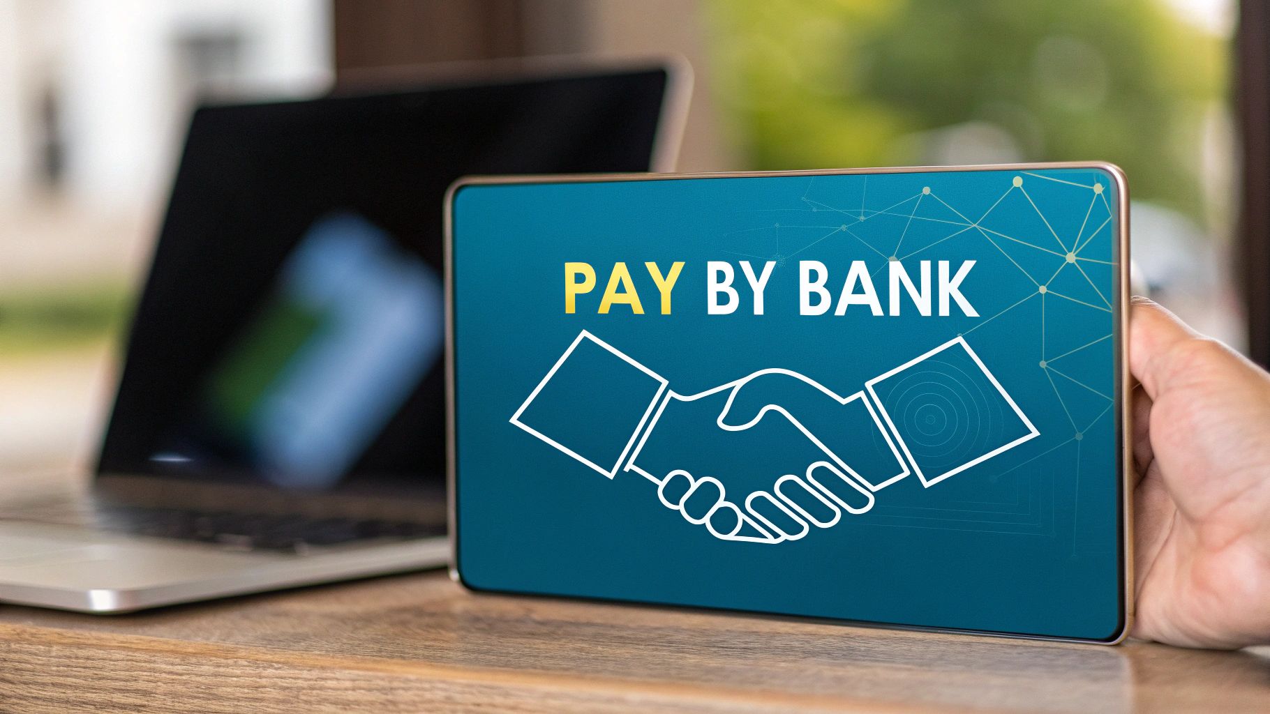 Pay by Bank is a way for customers to pay you directly from their bank account, completely cutting out the usual credit or debit card networks. Think of it as a secure digital handshake between the customer’s banking app and your business, approved instantly with a fingerprint or face ID. It's faster, cheaper, and a whole lot safer than taking a card payment.